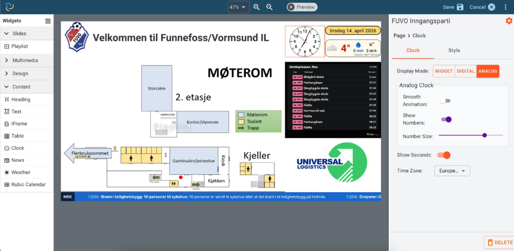 Create layout, schedule playlist, and present on one or more screens easily.